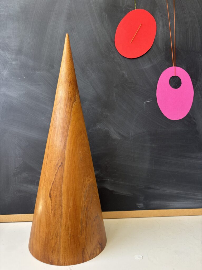 A wooden rimu cone (slicing is problematic), and elliptical forms using the voids to make wearable.